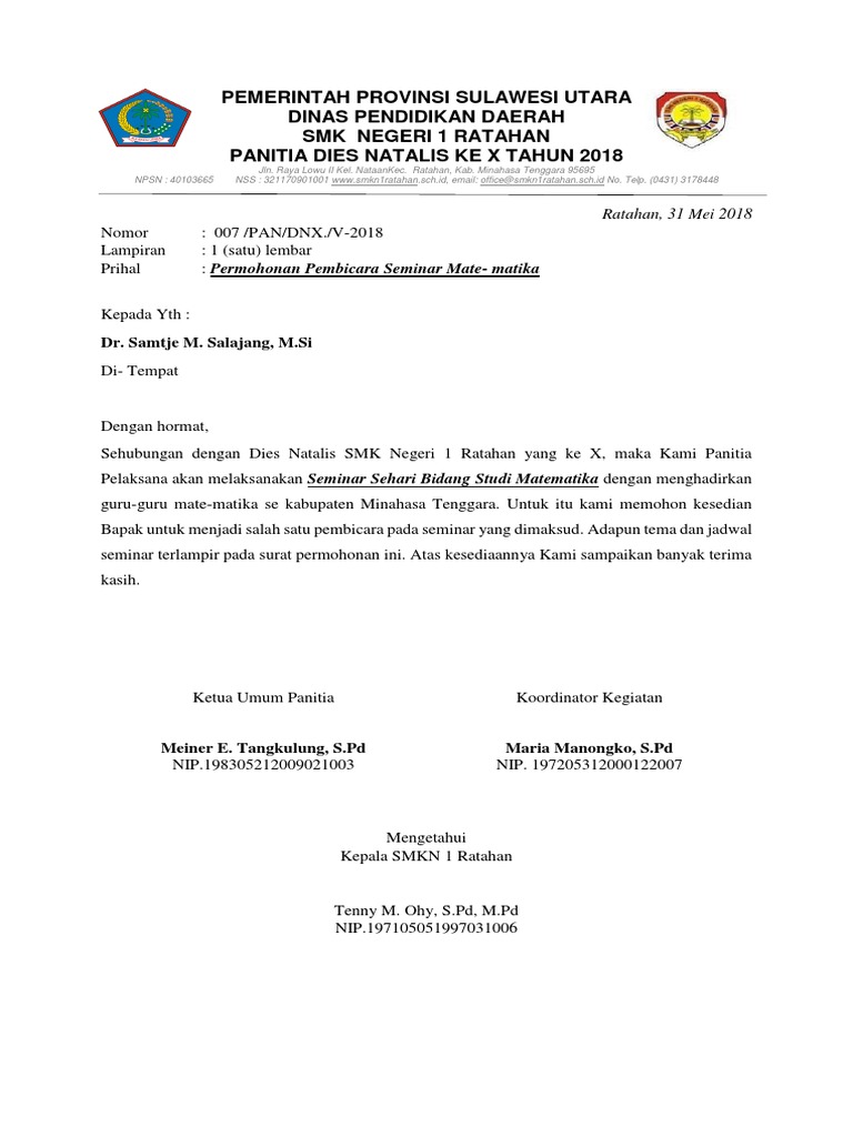 Surat Undangan Dies Natalis from imgv2-2-f.scribdassets.com Jun 28, 2021 · surat undangan kepada para pengurus bem ui resmi dibuat pada minggu 27 juni 2021 dan ditandatangani direktur kemahasiswan ui tito latif indra. Foto dokumen itu juga beredar di media sosial. Untuk kode klasifikasi surat di lingkungan dinas pendidikan dapat kita temukakan dalam peraturan menteri dalam negeri republik indonesia nomor 78 tahun 2012 tentang tata kearsipan di lingkungan kementerian dalam negeri dan pemerintah daerah Terdapat 10 orang yang dipanggil, termasuk ketua bem ui leon alvinda putra. Dec 16, 2014 · contoh umum yang masih salah adalah ketidaktahuan kode klasifikasi surat dan cara penulisannya.